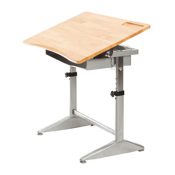 Bàn và ghế có thể nâng hạ chiều cao dễ dàng bằng các nút xoay.
