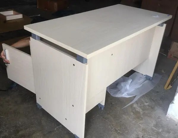 Quy cách: gỗ MFC màu vân gỗ sáng H2102 cao cấp. Bàn sử dụng ke liên kết gữa chân bàn và mặt bàn tạo thành khe hở.
