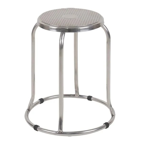 Ghế đôn chân tĩnh khung Inox, đệm ghế bằng inox mặt sần. Mặt ghế đường kính 270mm.