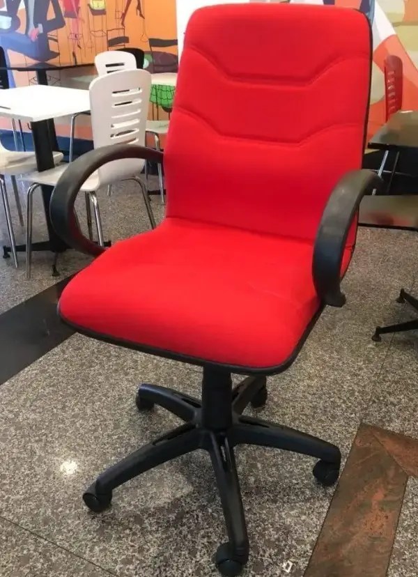 Ghế xoay có lưng trung, đệm và tựa bọc vải nỉ liền khối.