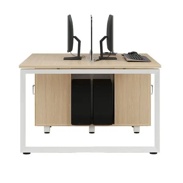 Module làm việc 2 chỗ, chân thép tam giác sơn tĩnh điện, liền hộc bàn.