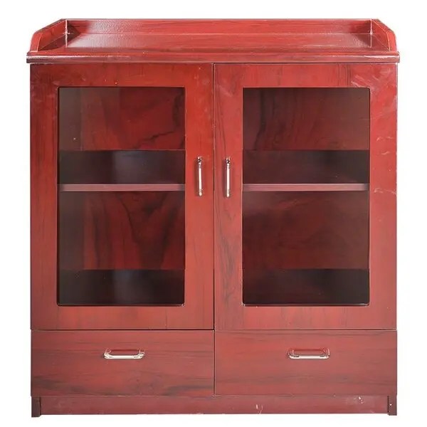 Tủ thấp 2 khoang, khung cánh kính, trong có đợt để đồ. Phía dưới có hai ngăn kéo.