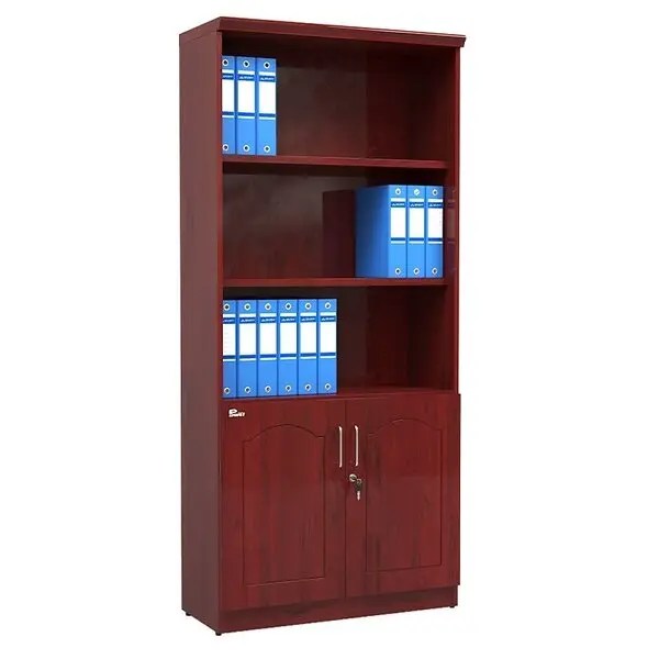 Tủ tài liệu 2 khoang, phía trên không cánh để tài liệu trưng bày sản phẩm, phía dưới có 02 cánh mở.